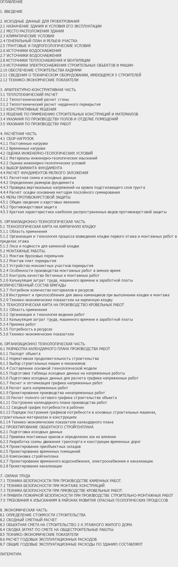 Архитектурная часть проекта выполнена на 3-х графических листах. В дипломном проекте расчетная часть выполнена вручную. В технологическом раздел представлены технологические карты на: кирпичную кладку, монтажные работы и на кровельные работы. В организационной части дипломной работы разработан объектный календарный план производства работ и объектный стройгенплан.