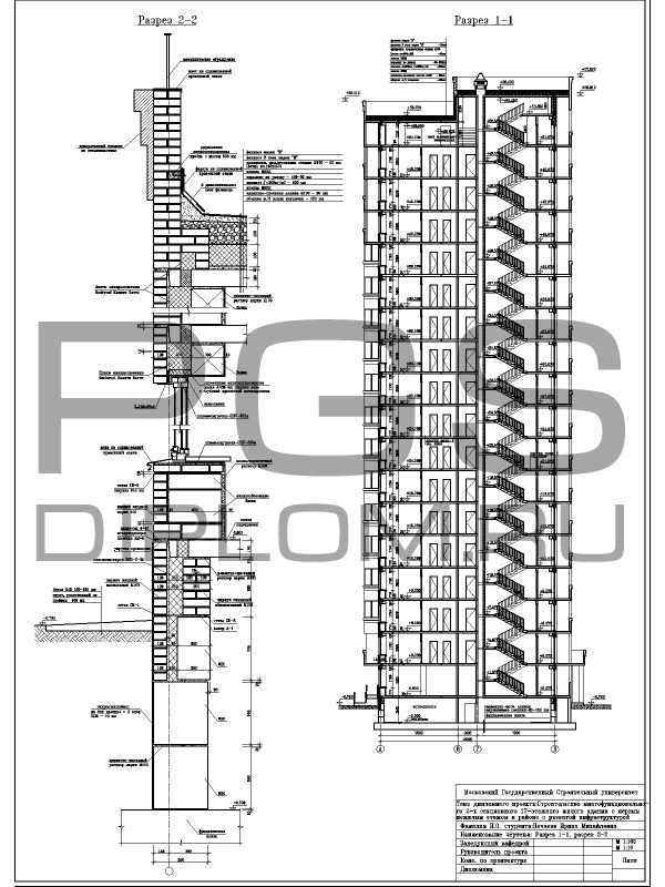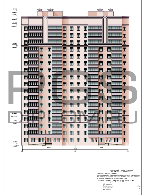 Готовый дипломный проект по специальности ПГС (Промышленное и гражданское строительство) на тему «Двухсекционный жилой дом в городе Москва»