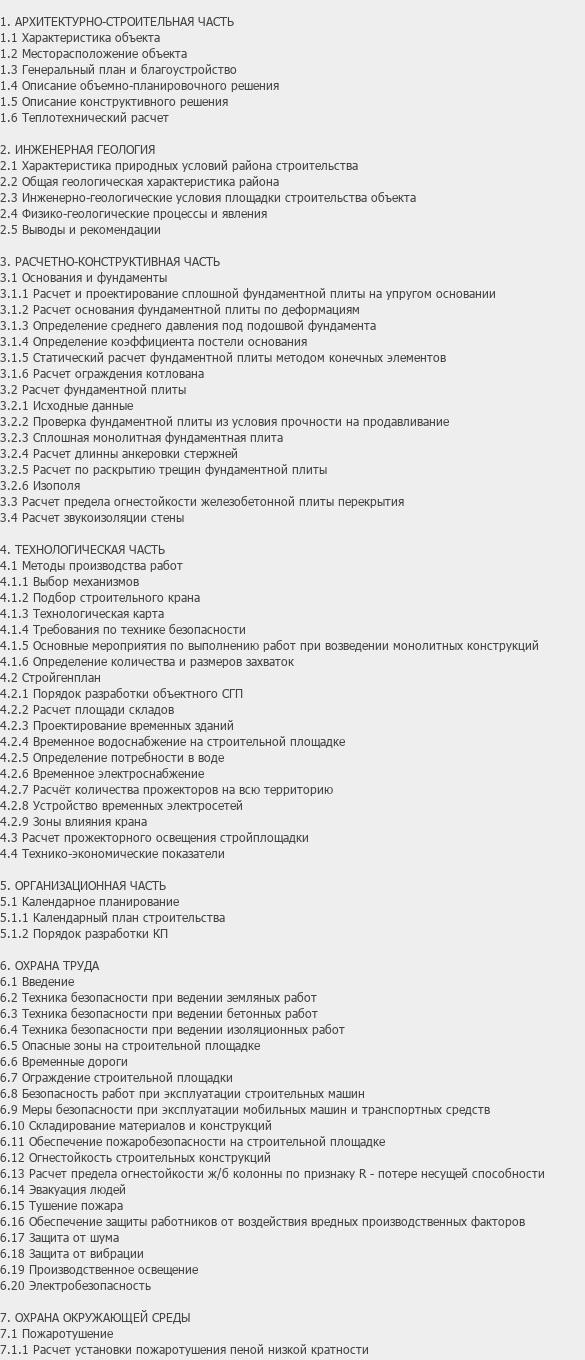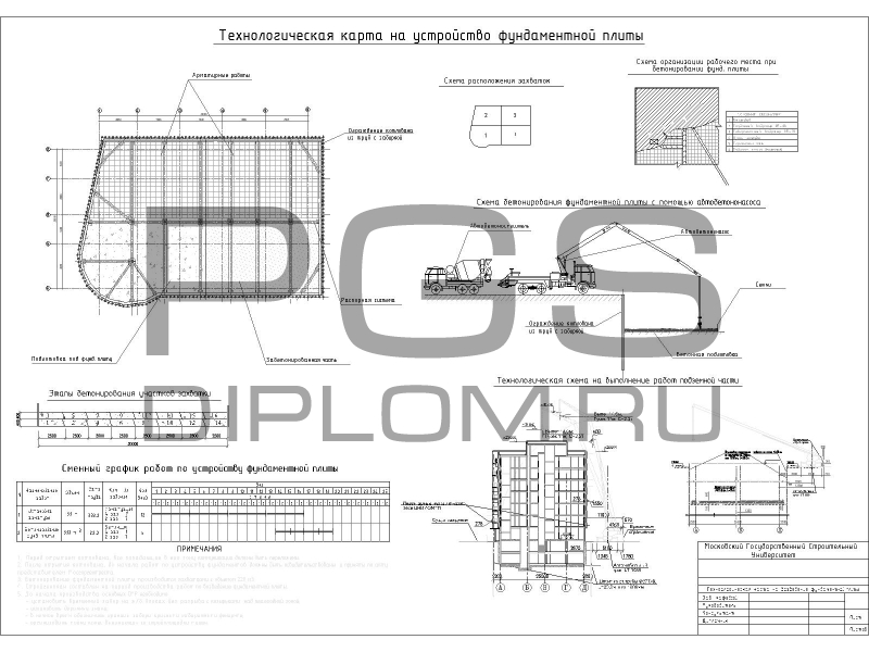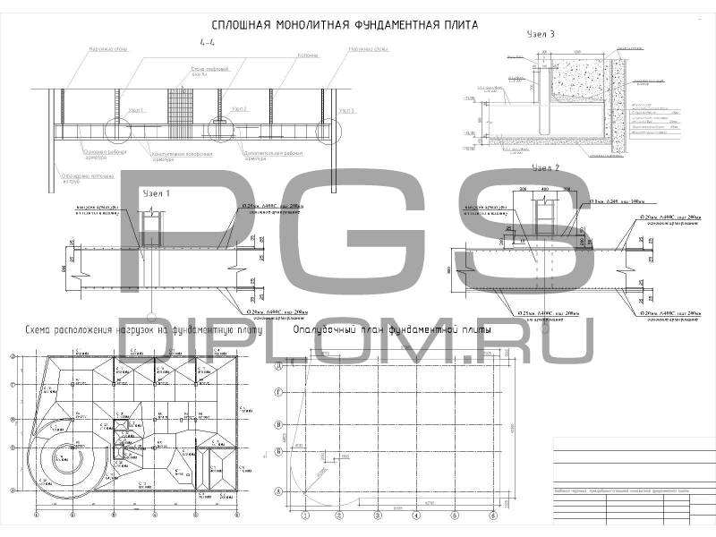 Расчеты были выполнены вручную и с помощью программного комплекса «SCAD». В технологической части находится технологическая карта на возведение фундаментной плиты.