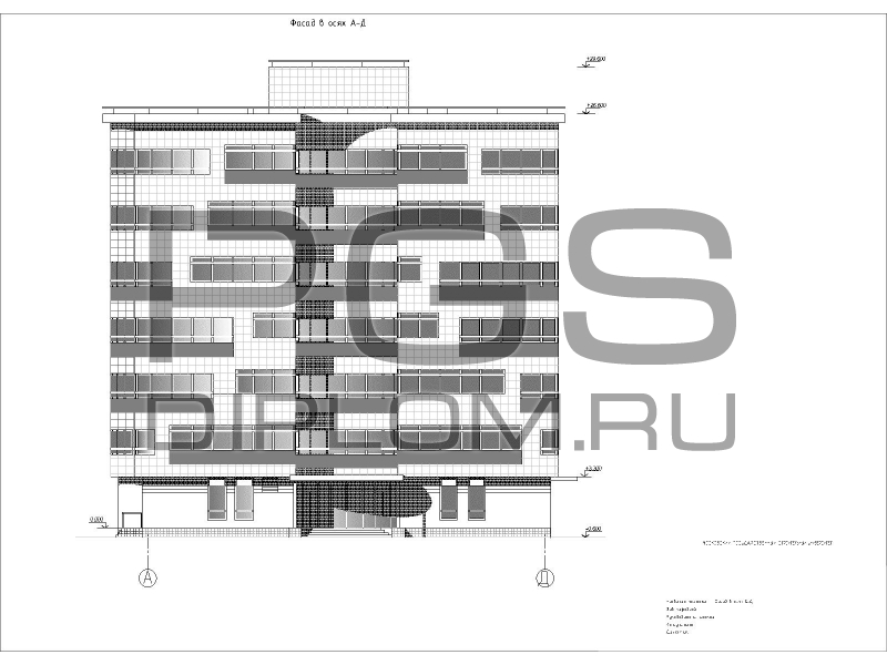 Проектируемое здание представляет собой 7-и этажный объем, где на всех этажах размещены административные помещения. Общая площадь надземной части - 5625.0м². В подземной части здания запроектирована 2-уровневая автостоянка на 60 м\м. В 3-х этажной подземной части размещена автостоянка. Размеры проектируемого объекта в осях 30.0 м х 25.5 м – надземная часть и 38.1м х 25.5 м - подземная. Максимальная отметка 27.2 м от уровня земли. Высота наземных этажей: первого – 3.9м, остальных - 3.6 м, высота подземных – 3.9 м и 3.6м. Отделка фасадов – навесные панели из алюкобонда, керамогранита. Цоколь облицовывается керамогранитом. Витражи – в алюминиевых профилях.